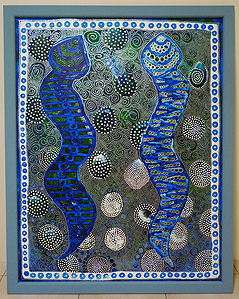 Snakes (88 cm x 109 cm) - Acrylic on Card - Timber Framed
