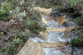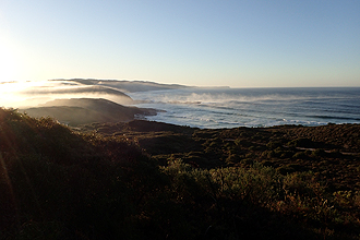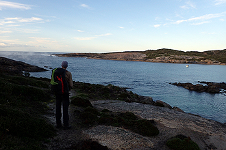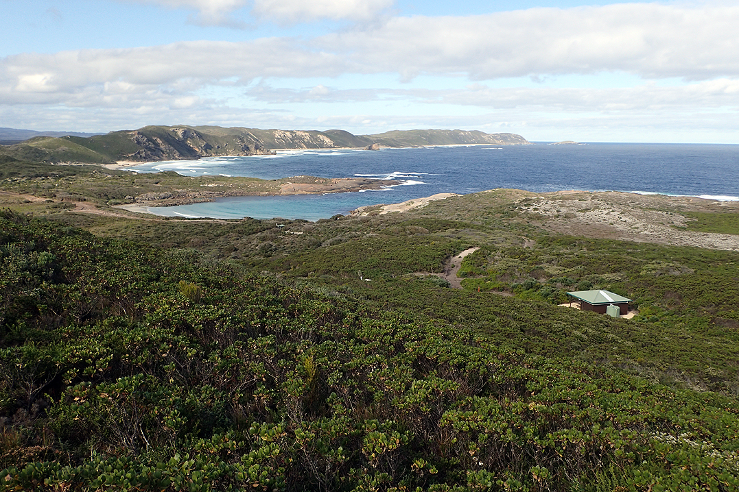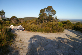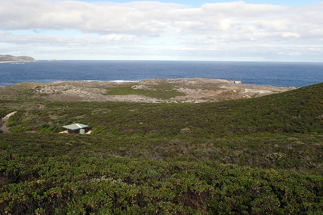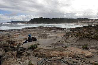 You leave the beach with the help of a rope that allows you to scale the vertical sand dune! William Bay Hut was another wonderful hut with great ocean views from a massive, flat-topped boulder. We were tempted to pitch our tent on it! We sat up there and watched the sunset and the sunrise the next day. It is a great spot. My mattress has been deflating overnight. We found another small hole next to the first and patched it.