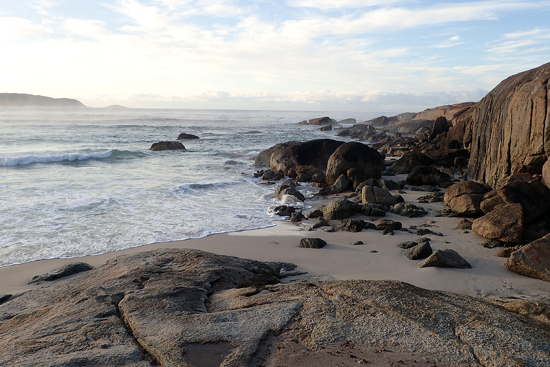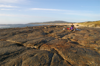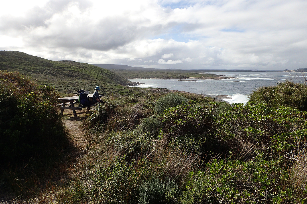 It was really worthwhile to watch the sunrise from the boulder and then we got on with our day. Our first break was at Light’s Beach where we chatted to a fisherman. The route here goes along sealed tracks for a way. We still could not believe our luck with the weather!