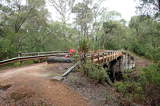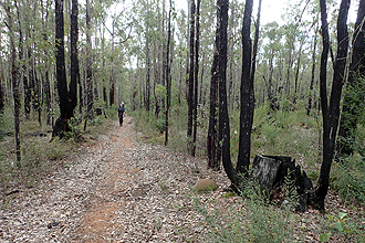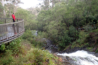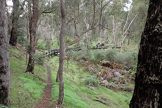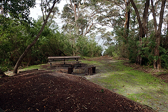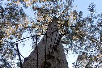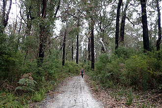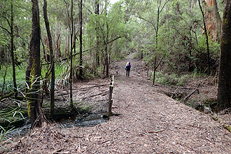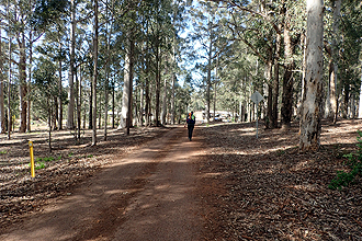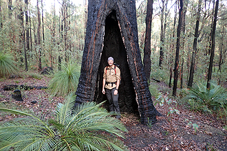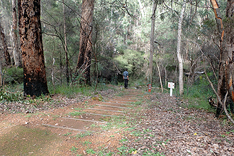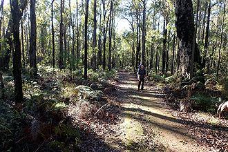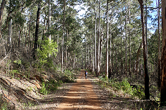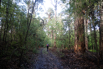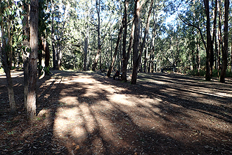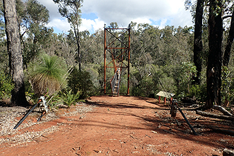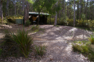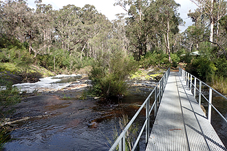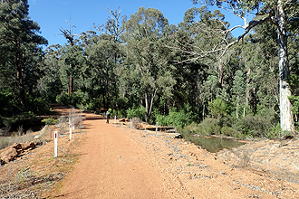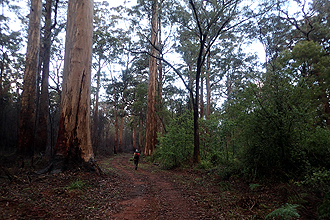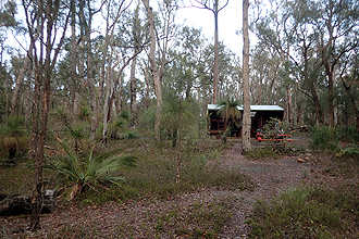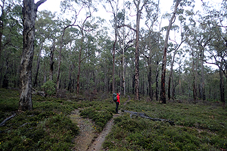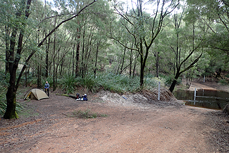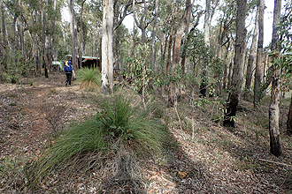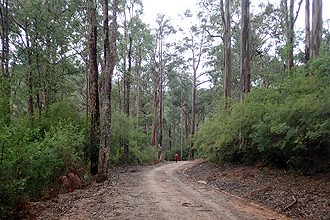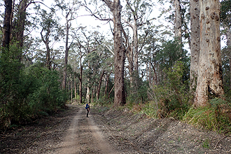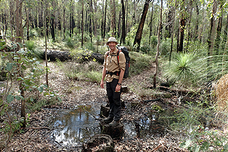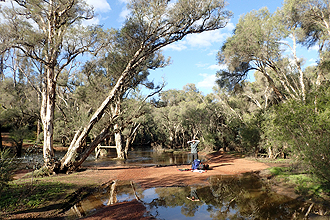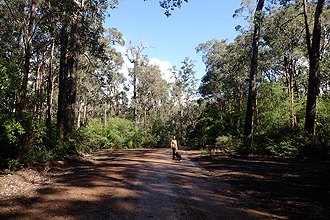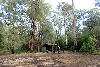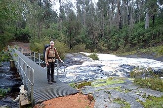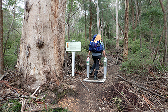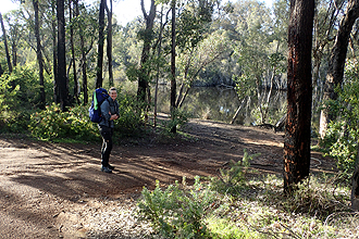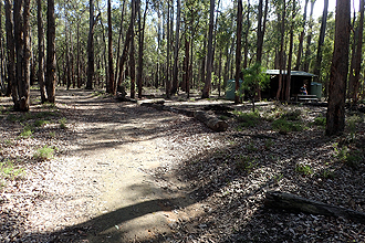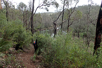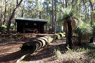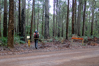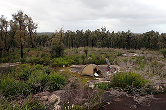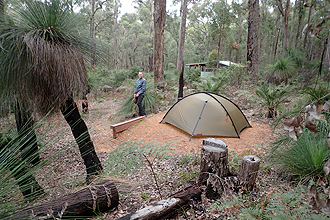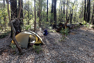 The first 3km of the walk was through Pemberton's side streets and headed in the direction of the Gloucester Tree. The Tree is 60 m high and was used as a fire lookout during its hey-day. Now, it's a tourist attraction where people can climb up the somewhat dodgy rungs and get a view of the surrounding land. We didn't the inclination or the time to carry out this feat, as we had about 17 km still to go to the Warren Hut. You don't get many views walking through the Karri Forest, but the environment is very pleasant. There are also no real hills to speak of. We saw a 1.5 metre long brown snake on the path, but it was in a great hurry to get out of the way, so no harm done. About 1 km before the Warren Hut, we decided to camp just off Collins Road, on the banks of the Warren River. This offered us all the water we needed and we fell asleep listening to water rushing over the ford. The total distance covered for the day was 19.0 km in 4h10 walking time.
