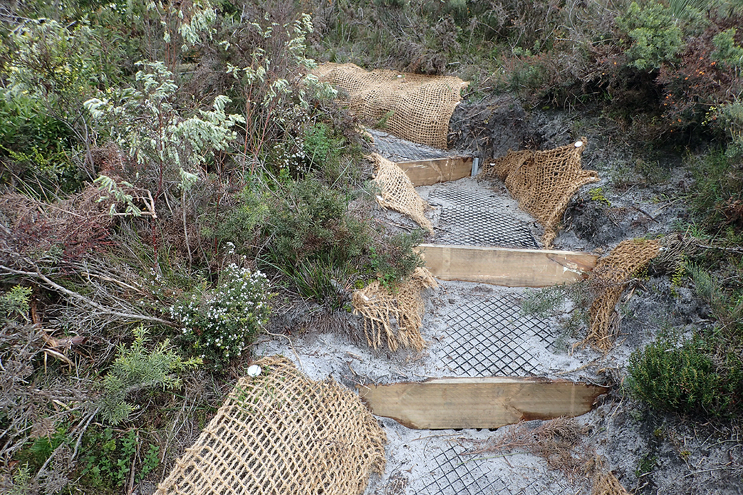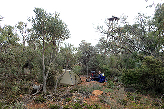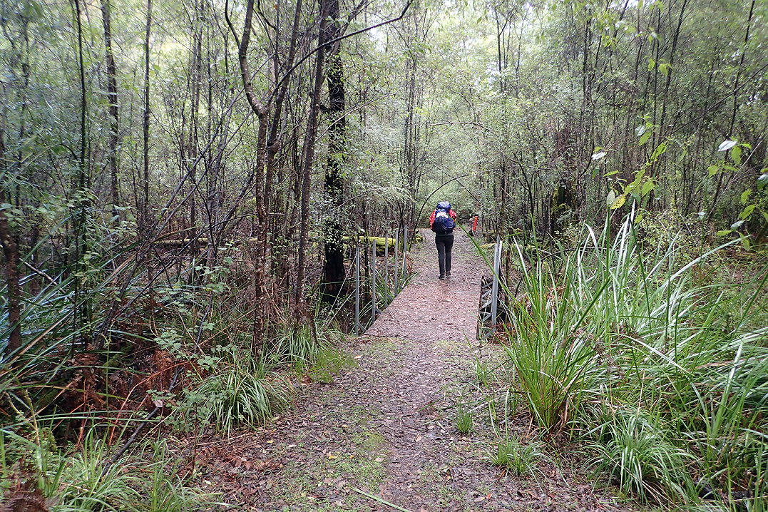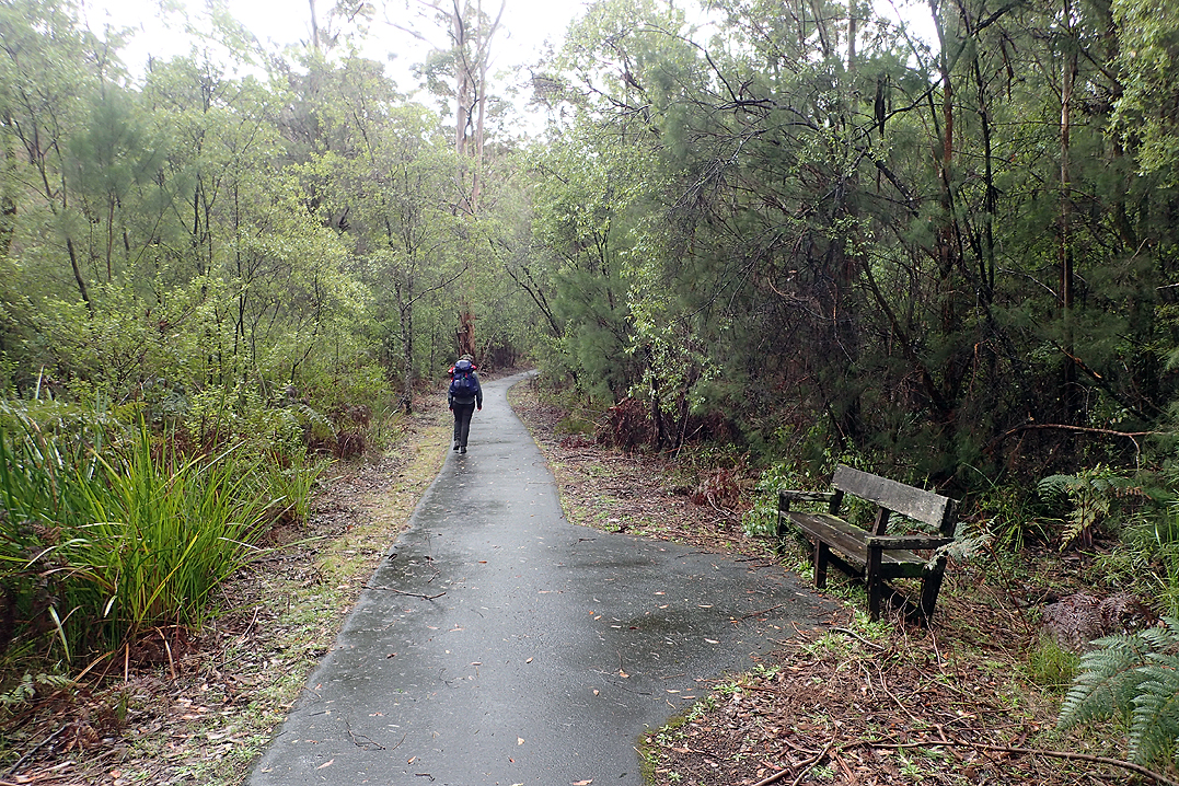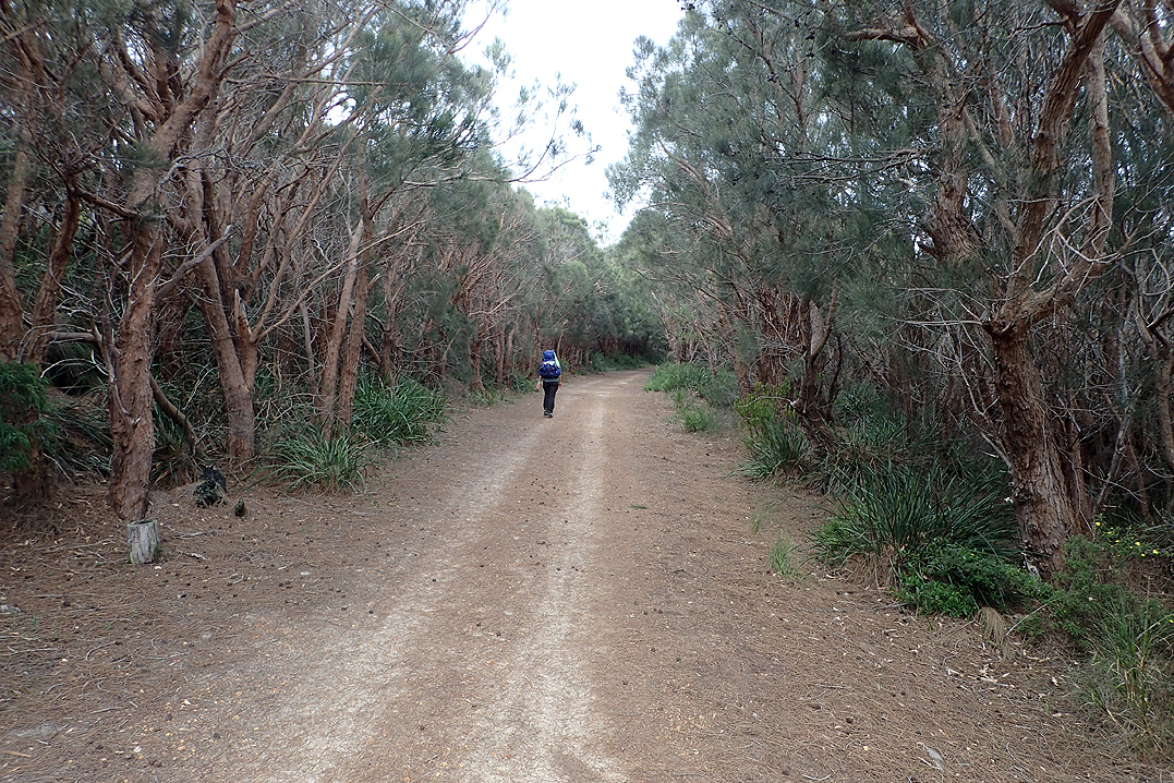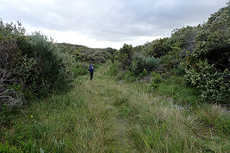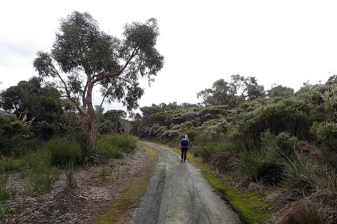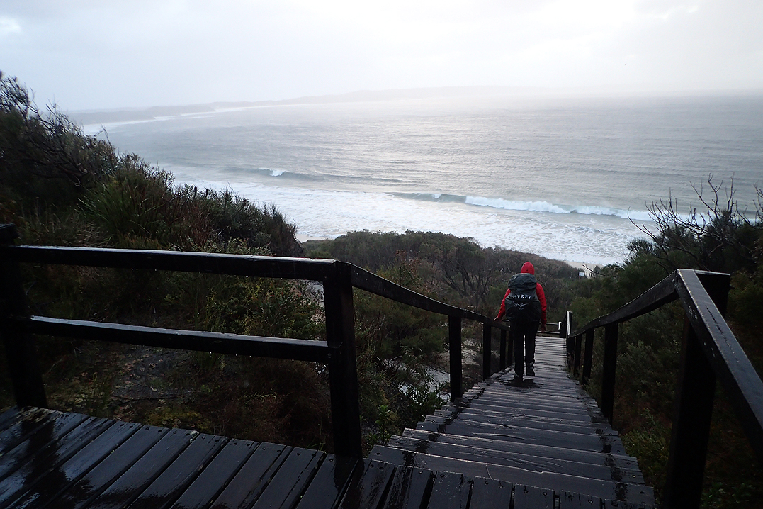 This part of the walk is back in the trees, and to be truthful we had had enough of that. We were keen to get back to the coast. We lunched at Giant’s Hut and then kept going really to a point where we were on the sandy coastal plain again. We pushed the weather as far as we could and got the tent up just as the rain came in.