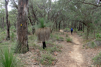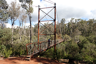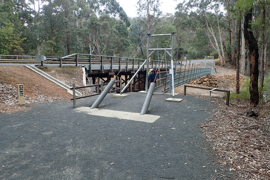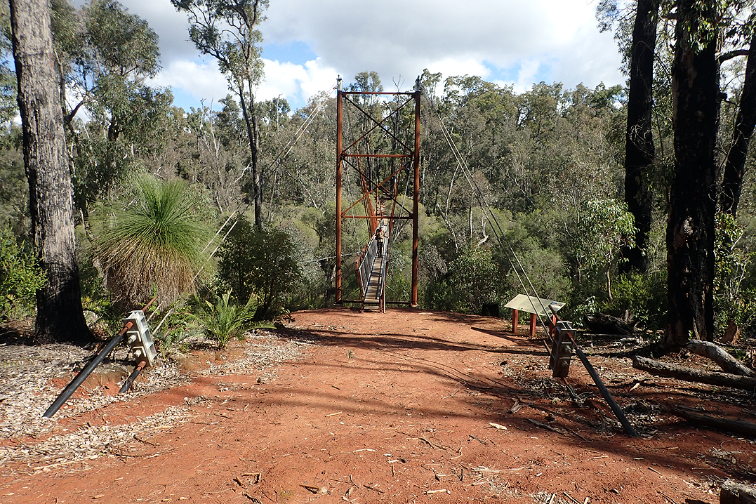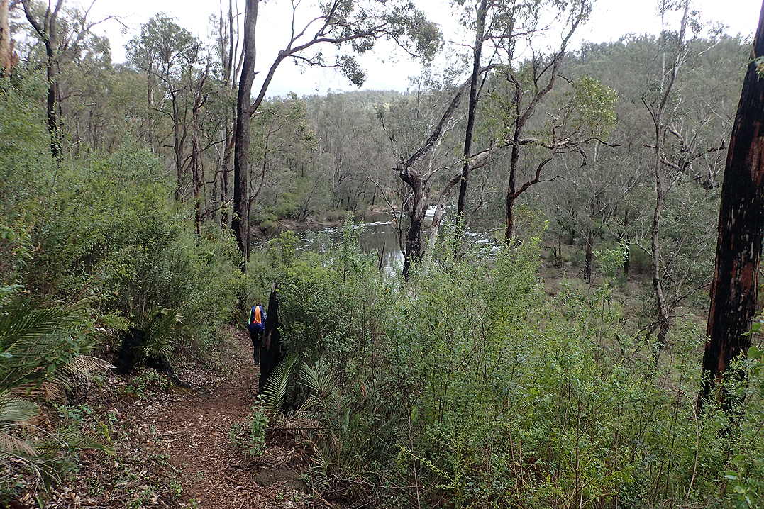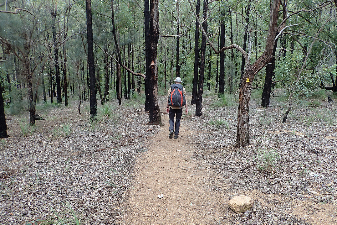 We caught the bus from home to Kalamunda and it was a 2 min walk from the Kalamunda Terminus to the start of the trail. It was a busy, warm Saturday. The trail leads sharply downhill from the start and is fairly rocky and twisty. We were surprised to see little rivers flowing and wild flowers. Our packs were heavy but manageable, but we were disappointed to miss a turn off and add on an extra 1.5 km to the day! Pretty soon we had crossed Mundaring Weir and passed the Hills Discovery Centre. We met a Bibb Vollie (volunteer) who advised us to take a rest day at Dwellingup but not at Collie as most people who have a day off at Collie bail! At this point we had only Dwellingup on our minds anyway as our first goal.
