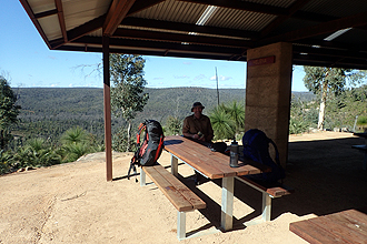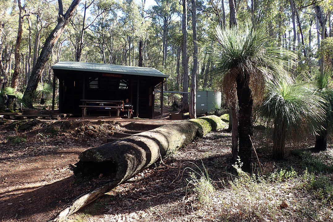 We had camped only a few km’s short of the next hut so we stopped in for breakfast and had a chat to a hiker who had overnighted there. He was hiking from Balingup to Kalamunda. We found that when people ask where we had walked from they can’t really grasp that we camp out wild, i.e. not at a hut. We really appreciated the convenience of the huts especially when we could time them for meals as that reduces the amount of water you have to carry in between. We had found that by now 500ml of water was ample to see you through the day apart from your meals and tea etc.