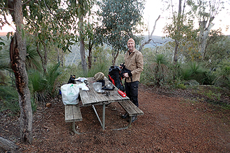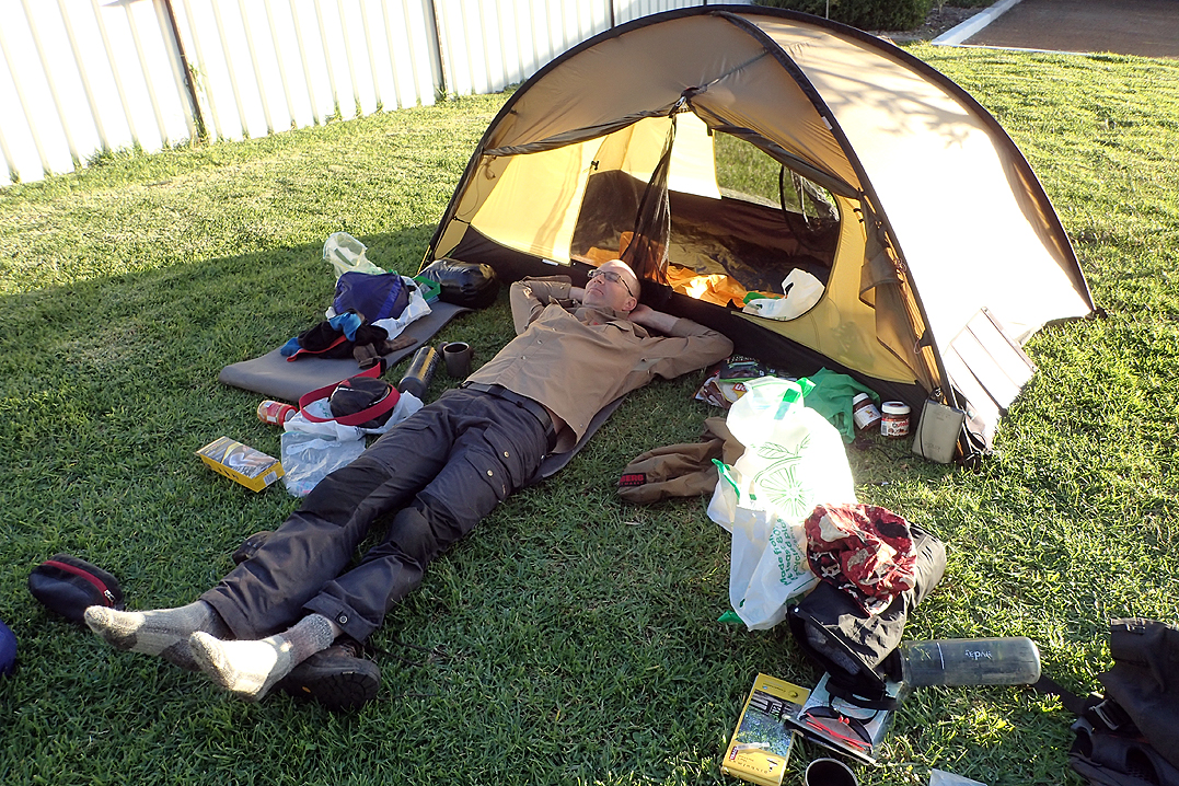 Overnight I found my mattress losing air and we found on closer inspection in Collie that I also had a puncture. We decided to purchase a foam camping mat which we cut in 2 so that we could each have an extra layer of protection under our mattress. Also, since Mike’s puncture we had been placing our rain jackets under our mattresses for protection. So now we had a mattress for our mattress. The joys of modcons. We resupplied at Collie and camped at the campsite in town which meant hot shower and laundry! As well as the foam mat, we bought an extra pair of scissors as those in our little leatherman were not functioning properly. Also a heavy duty elasticised knee brace as my right knee had swelled up alarmingly.