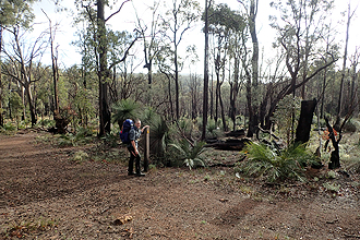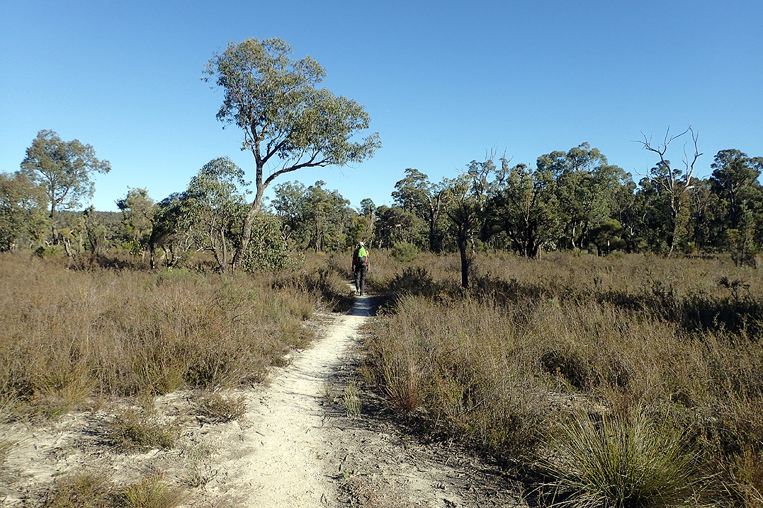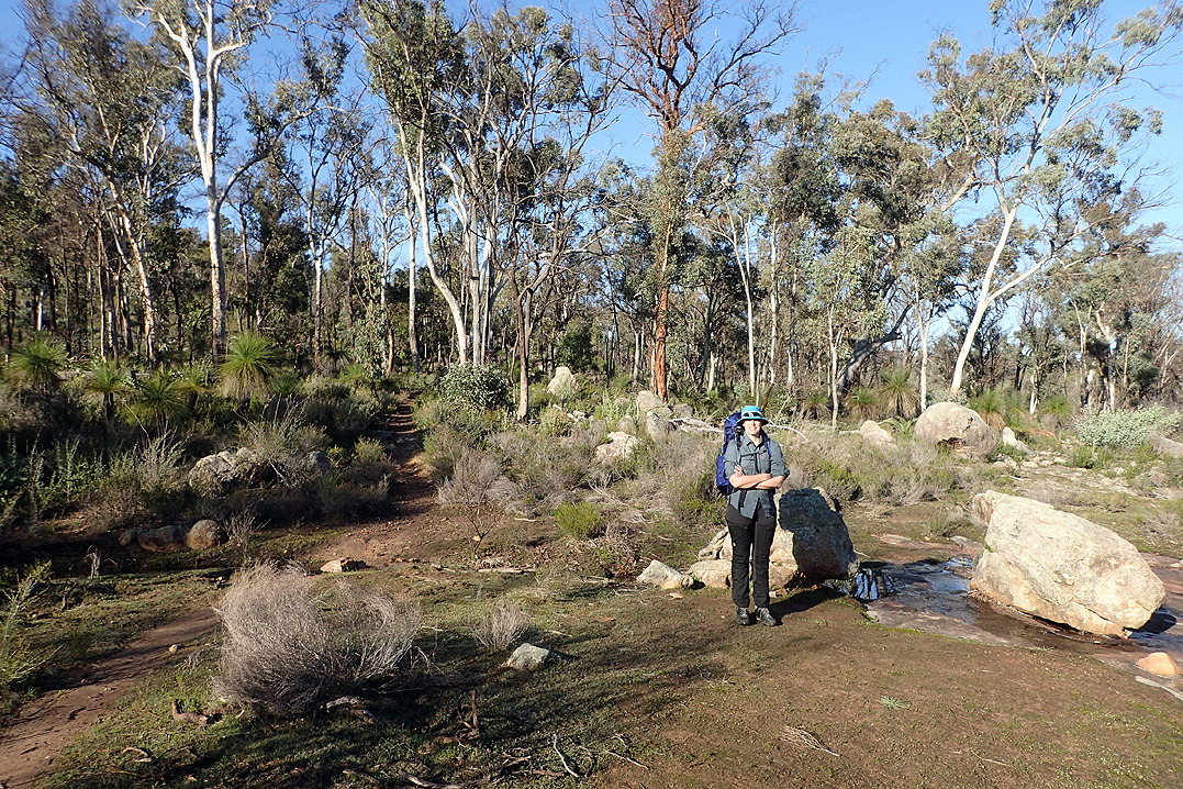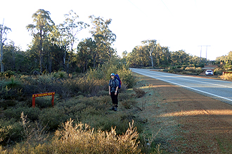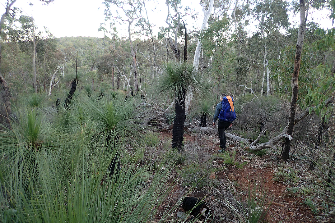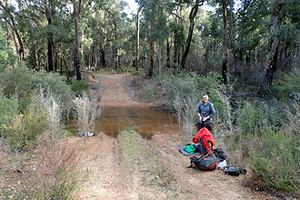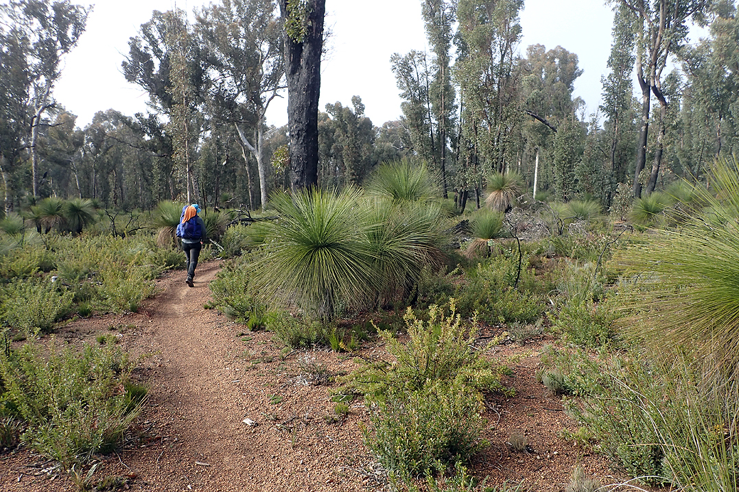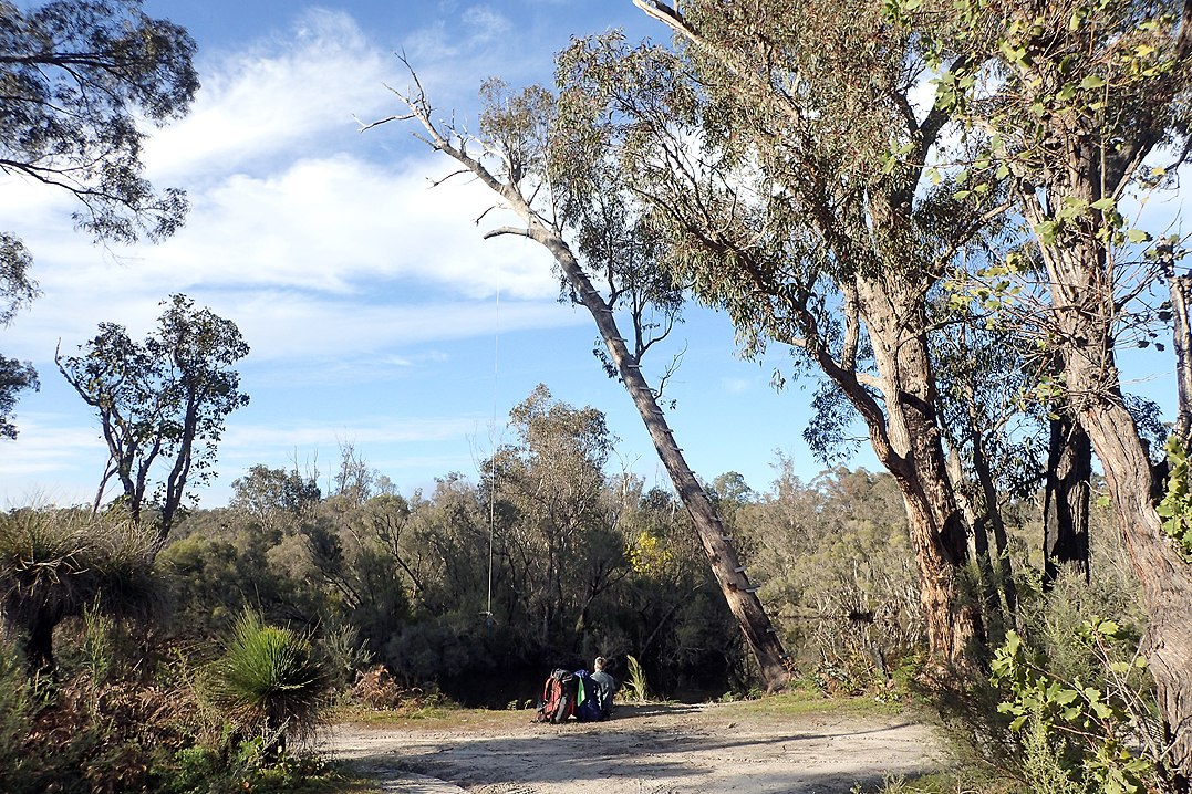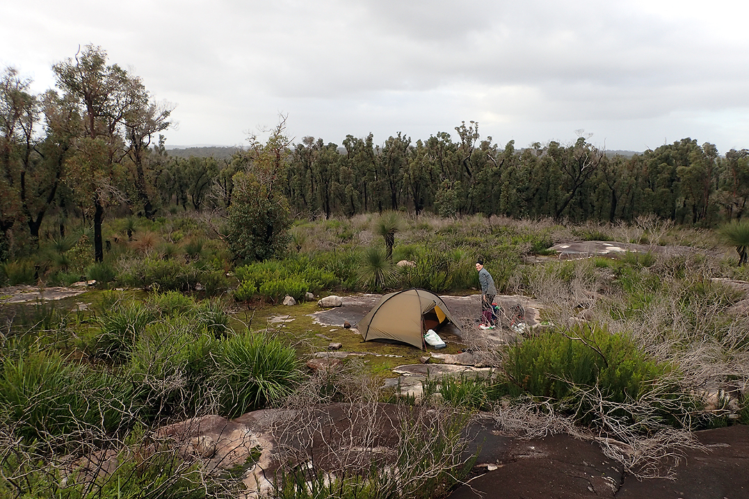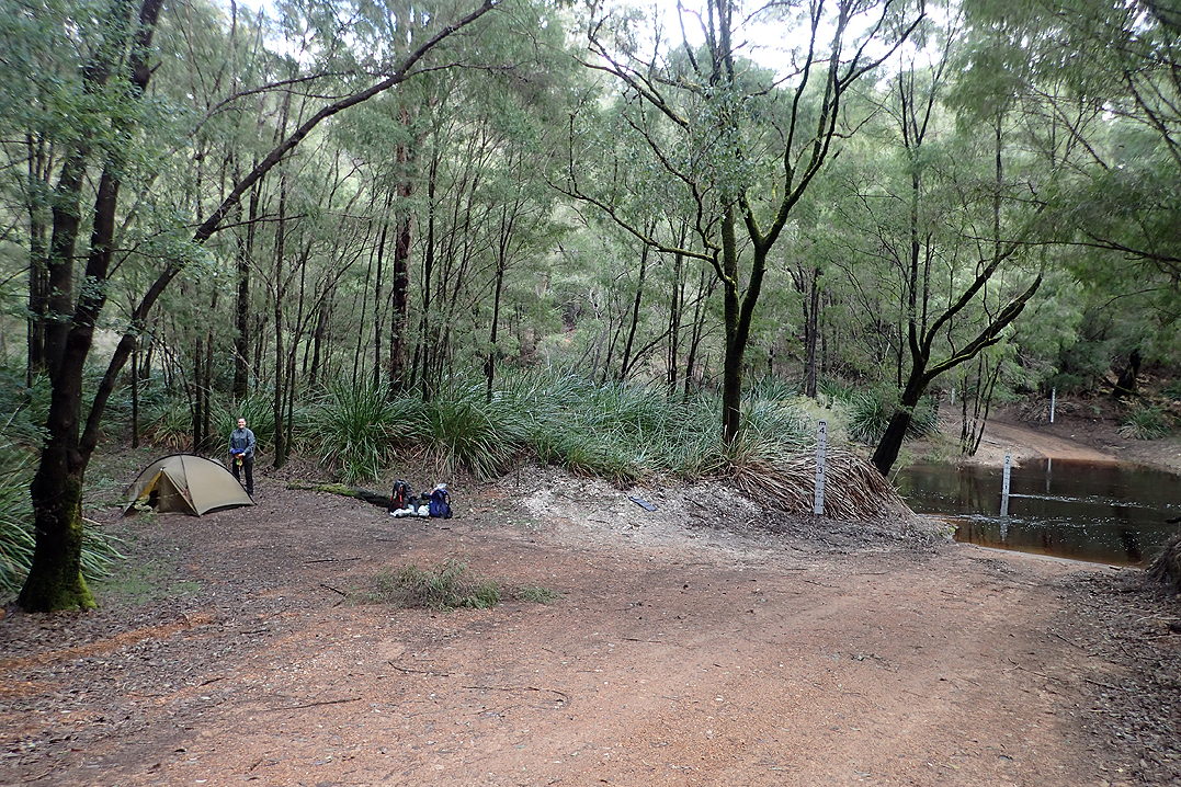 Geoff and Dolly caught up to us at Ginger Creek. Most hikers pop off the trail here to walk 1 or 2 km to the service station to buy an ice cream or sausage roll. Seems like a big effort for not much reward. We were to go on to our first bush camp. On the way we crossed Albany Highway. You would think that being within 100m from a National Road would guarantee you mobile reception at least, alas it was not to be. This would be a continuing theme of the trip. No signal at all, let alone the internet. We reflected on all the cycle tours we have been on in remote Sweden and Finland and almost always have both.