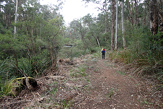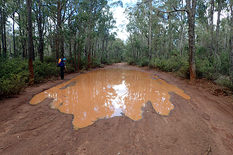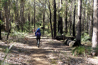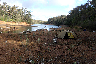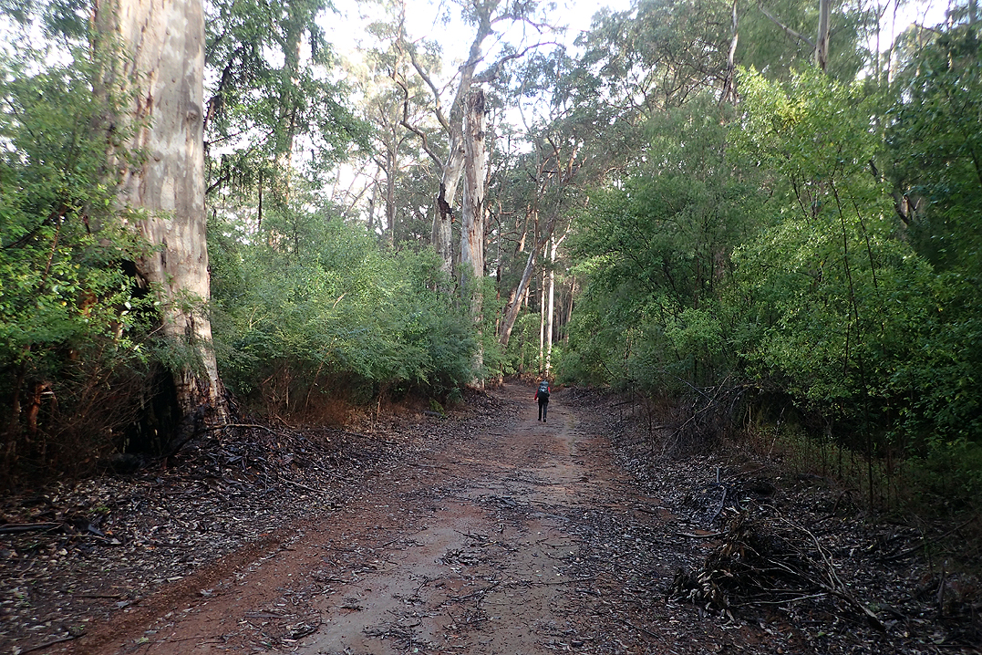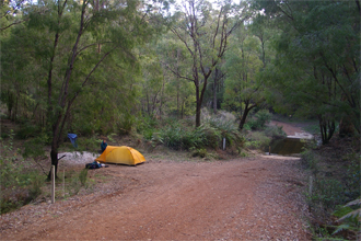 We woke early on Day 2 and made our way to Warren Hut where we found out that four people had spent the night. Two of these were end-to-enders. After passing through the hut area, we crossed the River Road Bridge, and then wound our way along the Warren River towards Moons Crossing. Nothing too exciting along this section of the track, but early morning in the Karri forest was beautiful. After a couple of rest stops along the way, and a couple more snake spottings, we arrived at the Schafer Hut in the afternoon and enjoyed a nice relaxing swim in the nearby dam. The water was cool, but ever so refreshing. This would have been an ideal place to spend the night, but with the following day being the last day of the long weekend, we wanted to miss the end of weekend traffic back to Perth so decided to push on. We had planned to spend the night near Lane-Poole Road, but it turned out that water was not going to be easy to find. We pushed on for a further 3 km until we crossed a small stream with water that could be filtered. We pitched the tent in the middle of the track and listened to the amazing birdlife while the sun went down. The total distance covered for the day was 28.0 km in 6h30 walking time.
