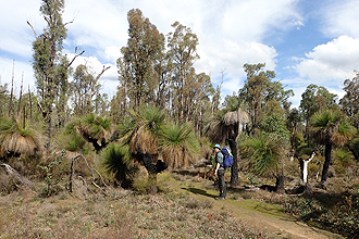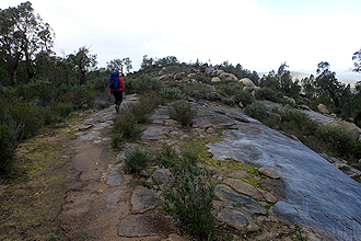 Today we said "Hello" to Mount Cooke and the boys, by which I mean Mount Vincent and Cuthbert. There had been fires in this area and then later prescribed burns to finish off what the fire had started. The day was probably the toughest climbing of the trip, with Mount Cooke being the most well-known, but as is so often the case, the other two were probably more difficult! It is always the ones you least expect. We love the expansive views of the forests. It is strange as you don’t automatically think of forests when you think of Western Australia, but as far as the eye could see, which was a long way over flat plains, trees were all you could see. We also love these large rock domes. After Mount Cooke you walk down the steep rock dome for quite a way.