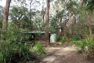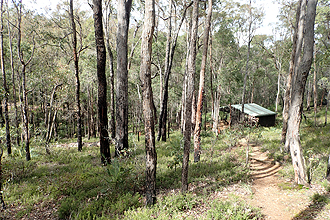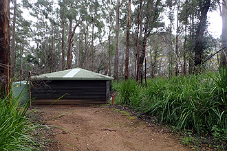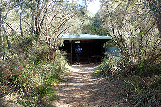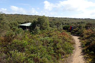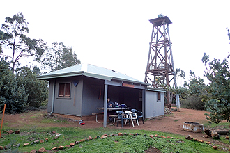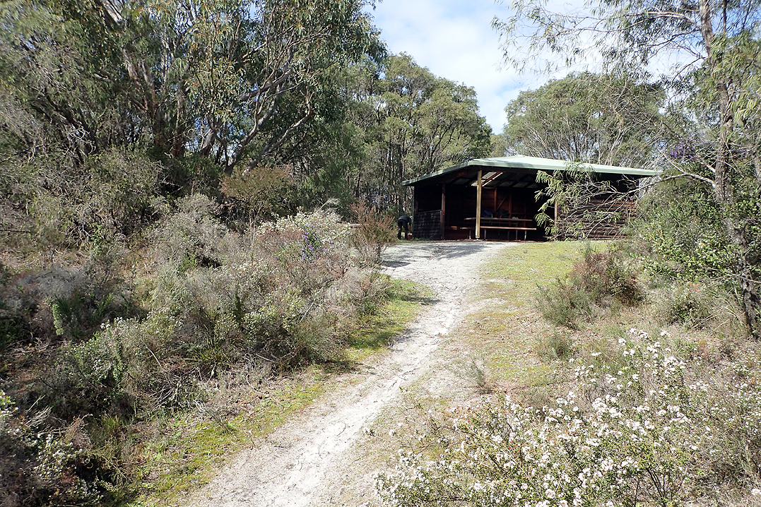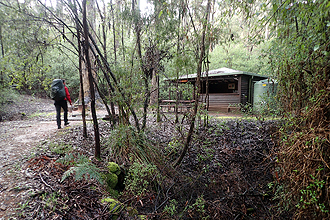 It was a good thing we had not persevered to get to the spring last night as when we passed the spot on our map where it was marked it was impossible to find it. Mount Wells Hut is a different sort of structure as it is the old fire lookouts accommodation.