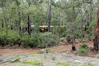 The walk into Pemberton was easy and quite varied and we arrived through the "backdoor" as usual. We were standing on the wrong side of a waterway opposite the campsite and of course had to walk all the way round to get to it. At first glance we weren’t sure about the campsite. It seemed like an old municipal site but all the fittings were quite new. It also looked quite flooded in parts. We walked past an old white demountable to get to the office. The office was unattended but when I phoned the manager arrived in a few minutes. It was $25 per night to camp and he offered us the little white demountable for the same price! Winner. It was only a concrete floor and the door did not lock, but who cares? Roof over the head! We walked into town only once and did all our shopping for the section to Northcliffe, plus get our food for the rest day tomorrow. We had hot showers, did the laundry and made maximum use of the camper’s kitchen. So it turned out to be the perfect place for our only rest day of the trip.