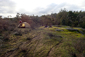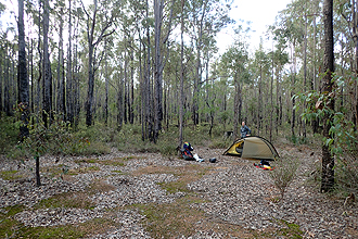 That night we camped next to a four wheel drive track. My mattress started deflating overnight again. Mike’s mattress had developed a problem where the baffles disconnected and so massive domes formed. There was also another hole in his mattress where this had occurred. These mattresses were "absolutely bloody buggered".