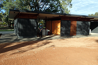 We walked into Dwellingup along the railway tracks and were very pleased to get there! As you enter the town from the trail the first thing to greet you is a fabulous brand new shower/toilet/laundry block which is purpose built for the Bib Track and Munda Biddi. Wow – what a surprise! Hot shower! We then went to the post office to pick up our food parcel which we had mailed from Perth and bought some extra items at the IGA Supermarket.