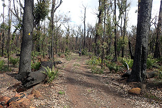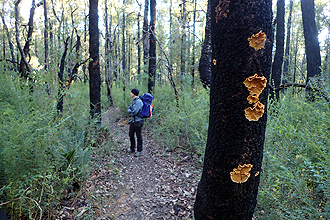 Before camping tonight we crossed a wide floodplain with a river flowing across the centre. The whole area was beautiful as it had been burnt out and the path was raised over the water. We camped just after this.