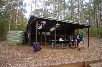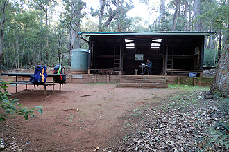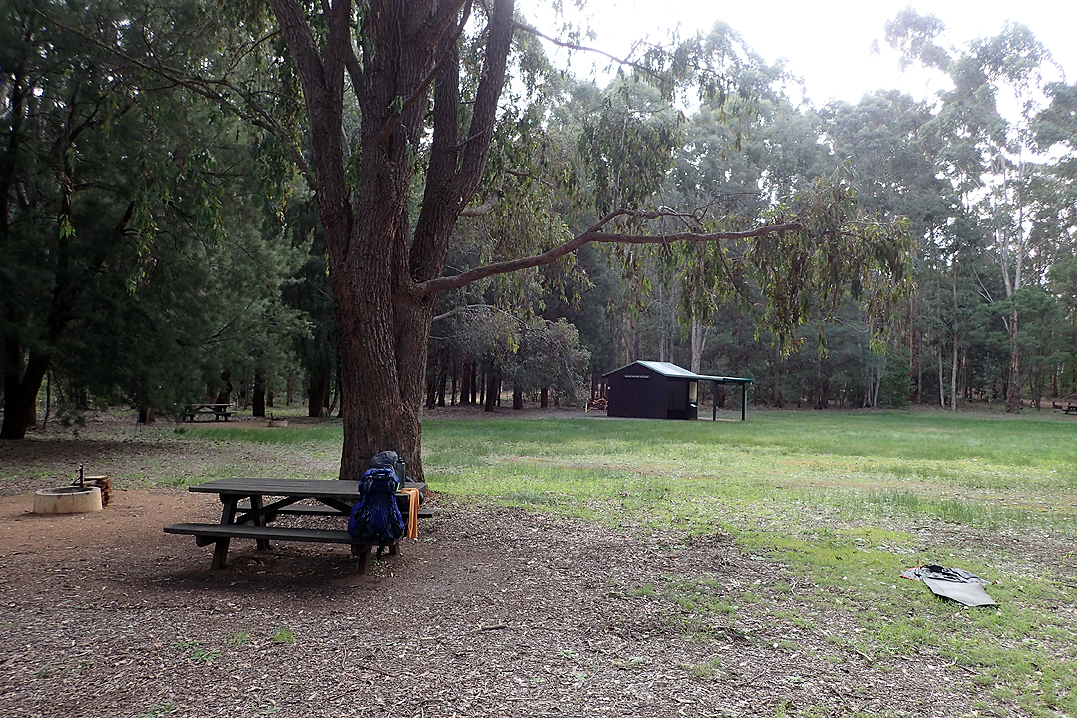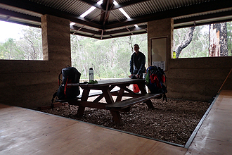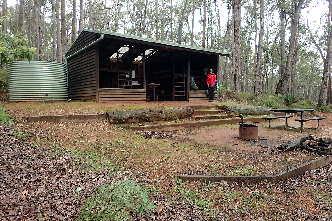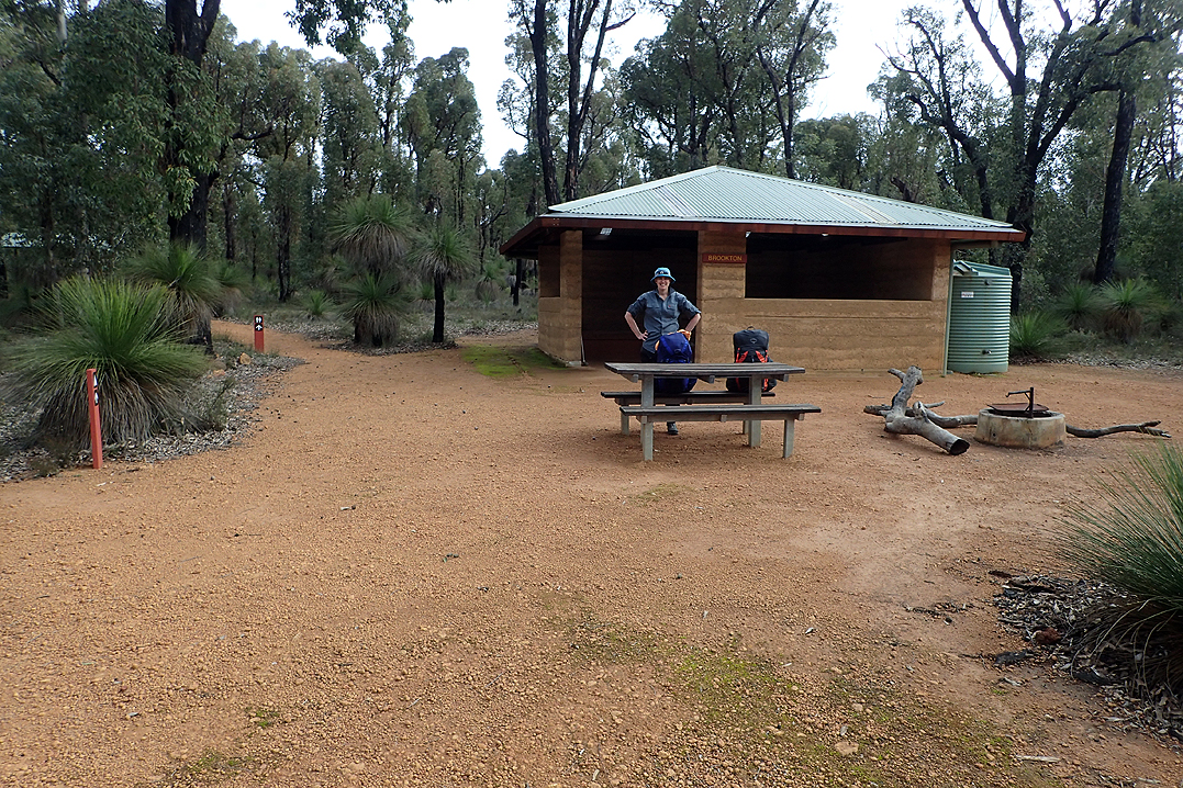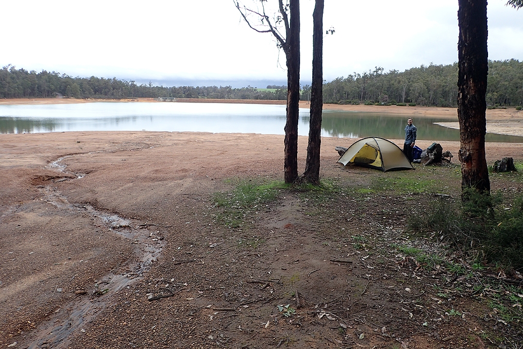 We ate our cheese and tomato buns (another regular treat in any track town – no hamburgers or ice creams for us!) and walked out the other side of Dwellingup to the next hut. We found we were happier passing through the villages on the track in most cases instead of staying there. There was heavy rain overnight again, our tent performed well. Cannot complain about overnight rain!