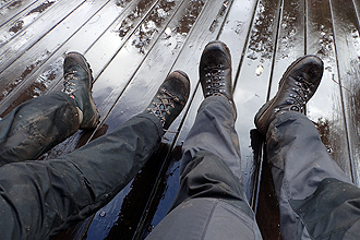 It rained heavily and continued more gently in the morning. We were excited to try out our "rain skirts" which were just very large garbage bin bags that you can almost wrap around your waist and then fasten your pack belt over. Keeping the rain off the front of our upper legs kept us much drier. As your hiking pack protects your back and back of your legs from rain, there doesn’t seem much point to wear rain paints and we did not bring any.