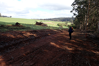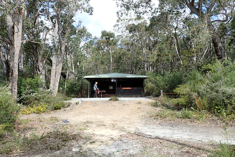 We walked 5.3km along the South Coast Highway, 1.7km along the Munda Biddi and 7.8km along Eden Rd. We then rejoined the trail and it was 2.5km further to Nullaki Hut. The walking was easy, even along the highway as there was a wide shoulder. Along Eden Rd you pass through farmland which is interesting. We presume some hikers do this walk but many avoid it as it seems it is the last option recommended. We think that the Bibb Foundation should make this an official part of the trail. When you consider the trail in its entirety there must have been many areas where plans would have had to be made to get around some sort of diversion. It does not seem that it would be too difficult to create a trail path along that stretch of highway. We find it strange that the "purists" will complain about walking a short distance along a road but have no problem climbing in a car.