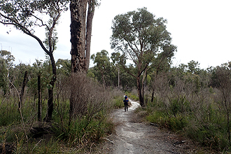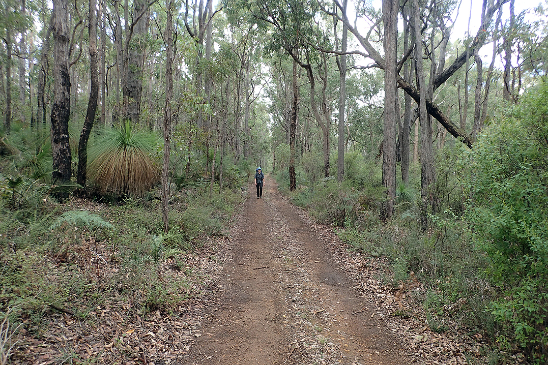 Beautiful walking today, much of it through virgin Jarrah forest and then later on along an old rail trail track. We met a Northbound E2E guy who warned us about the wet trail conditions further south and recommended accommodation in Ballingup. We found overall that the two things went hand in hand; someone told you horror stories about waist deep water, carrying your packs over your head, rats running over you while you slept and in the next breath told you all the B&B’s they had stayed in with hot showers and heaters.