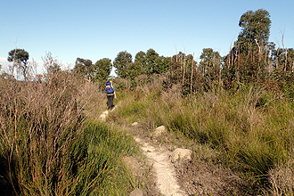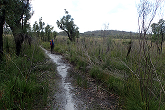 We had a super early start, the thought of fresh bread calling us I think. The camp spot was quite bushy with grass trees and the log we used last night was sort of behind the tent. Next thing I saw Mike walking up back to the trail with the stove, head torch on. "Hey - where are you off to?" I asked. Turns out he was so disorientated in the dark he was off to find the log in the complete opposite direction! In the end it took us 10min to find the damn log which was only 10m away.