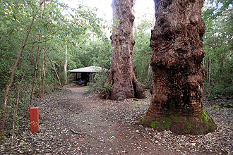 Even though we only had a day and a half left on the trail, there was still something to worry about - the Torbay Inlet crossing which we had been warned about by a number of Northbound hikers recently. It was waist deep or chest deep and you had to cross 50 m upstream holding your pack over your head. We had checked the tide timetable and unfortunately for us high tide was due at 9am. Another Southbound E2E’der had written in the logbook that they were going to walk the 20km diversion instead. This is an alternate route published and detailed on a map in the hut. We did not feel optimistic on waking, particularly as it was also now raining. We left at 06:00, skipping breakfast and then made for the inlet to try to get there before high tide, saying goodbye to Brendan as we left. We had no real idea what difference the tide makes on an inlet. You could assume that the higher the better as it slows water coming out, but as far as how deep the channel was etc, no idea. Shortly after Torbay Hut we walked through Cosy Corner camping area which is a wonderful free campsite. All these places have free to use BBQ’s, toilets and even bins (lucky hikers). Everything is pristine and well maintained.