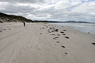 The day before we had decided that in order to respect the integrity of the undertaking we would walk around the Wilson Inlet. This would add on about 30km and one day’s walk, but we had allowed for it. So we had a job to do and this traipsing up and over a hill for no real value was a bit frustrating.