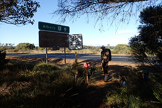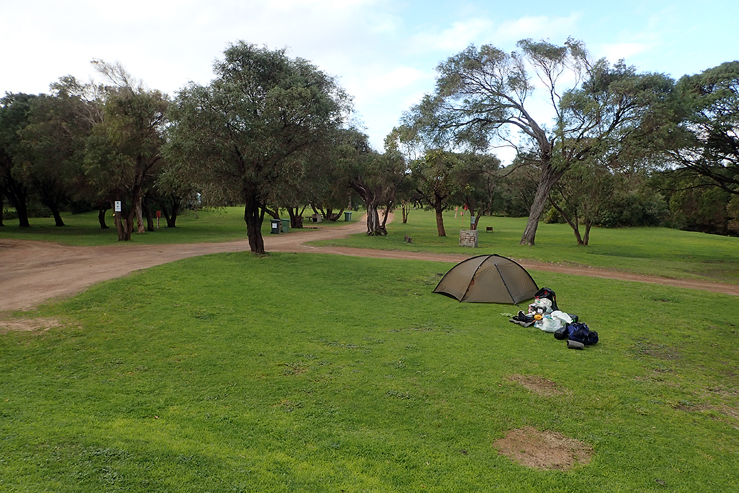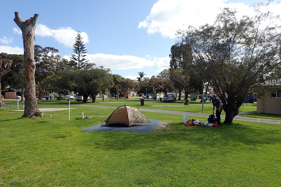 Distance = 983.1 km) The walk into Albany was quick and pleasant. Apart from the IGA where we bought the usual fresh cheese, tomato and bread roll nothing else was open. Not even the visitor centre! It was a glorious weather day though and we eventually wandered up to our campsite where we lay down on the grass.