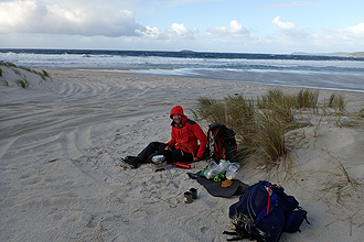 Biggest beat up: The crossing of the Torbay Inlet where all recent reports were warning of chest deep water, and packs having to be carried over one’s head. We got there at exactly extreme high tide, with a gale force south westerly, and the water was just knee deep!