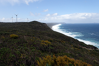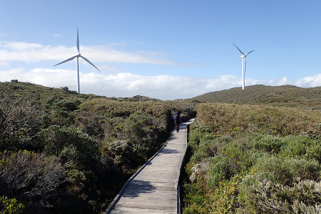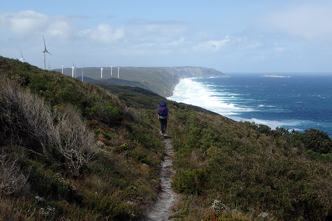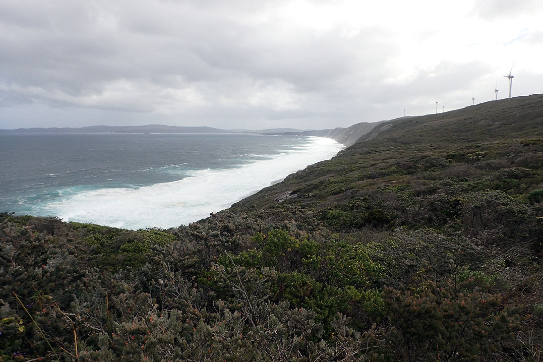 We stopped again at Muttonbird Hut for a snack after this we could see the 18 wind turbines that help power Albany. The walk was again all coastal views but a little different today with strong winds and rain storms rushing in from the ocean to dump water on us.