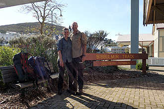 We arrived at the hut and there was a person inside it. It was Brendan of the amusing logbook comments! At the top of the stairs I saw this bloke sitting there and my instinct was to say "Hi Brendan" but at the last moment I thought he would think that that was weird. So instead I blurted "Who are you?" which, let’s face it, is actually much weirder. Anyway, he said "Brendan" and we sort of got over the awkward moment. It was great to meet him and chat about his track experiences.