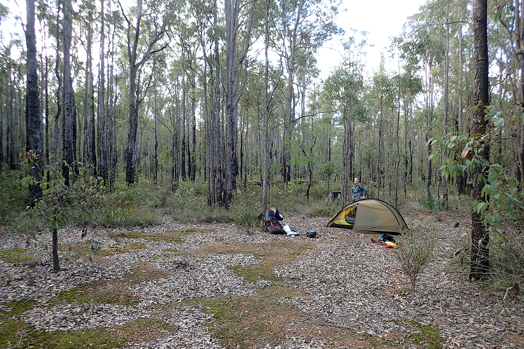 Harris Dam was a great spot and we saw our first emu here. I discovered that I don’t like emu’s much. After this we went a little further along the trail before setting up camp in the forest.
