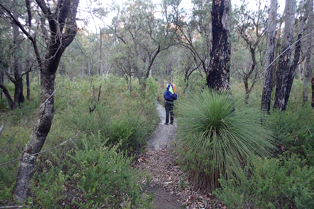 It was less than a 1km walk to Warren Hut and we were there early enough to wake two of the three hikers who had overnighted there. There was a couple, Kayla and Jake and a solo walker, Kade. We would meet Kayla and Jake a few times more on the walk. At this time they had driven to Pemberton and were walking to Northcliffe and would then take the bus back to Pemberton. Kade was getting back into walking after leaving his Southbound E2E at Donnelly River Village. His plan was to take the bus from Northcliffe to Denmark, from where he would walk into Albany with the walking partner he started the hike with, and then walk back Northwards, filling in the sections he had missed.