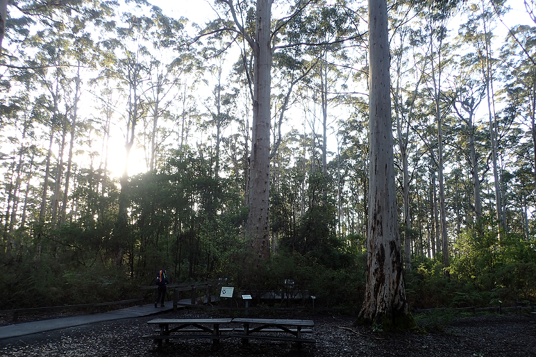 We had our first sightings of the famous Tingle Trees of Walpole at the end of the day, after climbing up Mount Clare to camp at the hut.