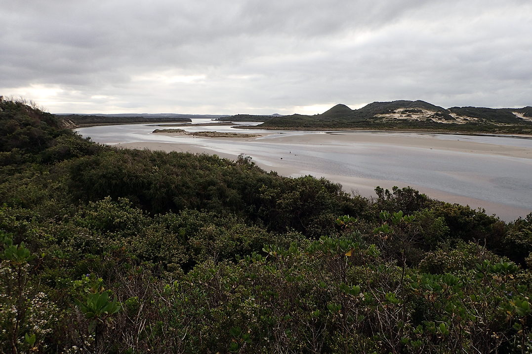 Then we had the relatively pointless climb up Mount Hallowell which went on forever and had almost no view from the top. You could see part of the Wilson Inlet opening. The sandbar which makes the inlet crossable on foot for much of the year had been breached a couple of weeks earlier. Walking the sandbar is not the official track but allows you to get to Nullaki Peninsula without breaking the trail. When the Bib was first planned there was supposed to be a boat that would take you across, but this no longer operates. Most hikers you meet (wait for it) GET IN A TAXI and get driven around the inlet. Some even (wait for it) arrange for accomodation in Denmark and the place they stay at drives them almost RIGHT up to the Nullaki Hut. I know what you are thinking, "If you are already walking nearly 1000km what is a few kilometers more?". We do not understand either.