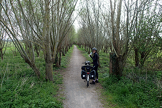 The ride from Taunton to Bridgwater was a nice suprise as it ran along a canal route so that was easy riding and picturesque with swans, houseboats and locks on the canal. At Bridgwater we had a bit of a suprise when the cycle route disappeared and we couldn't figure out how to get our bikes over a rail bridge until we realised we were supposed to use the steep staircase. So we managed each bike together, taking some gear off and hauling them up and down the other side. At the same time we saw about 10 commuters doing the same thing. Bit ridiculous for an international cycle route!