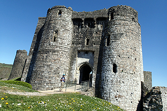 Although we had planned to continue riding today, on waking we decided to take the day off in beautiful Kidwelly. It ticked all the boxes. We were staying at a fabulous campsite with friendly hosts and great facilities, within walking distance of a supermarket and with interesting things to see. The weather was, yes you guessed it, perfect. We did some washing and then walked into town to get brekky. We went to Kidwelly Castle which was really interesting, as enjoyable as Caerphilly. We love that the castles are not "prettied up" or furnished or decorated. It allows free rein of your imagination. The windy spiral staircases within the turrets were really impressive. It was interesting to see how the town fitted in with the castle.