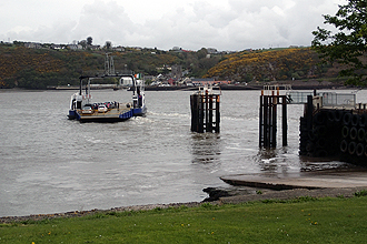 The weather forecast was for rain from lunchtime onwards and so with this in mind we planned an early start. We were just finishing packing at about 7:30 am when the rain started. It didn't stop once all the way. We were in full wet weather gear again and it was cold. We had 50 km to the Shannon Ferry and then about 30 km to Doonbeg. We bought brekky at Adare which was very close to the campsite and ate it standing in the shletered doorway of a community hall. Cycle touring when wet! The ferries depart Tarbert every hour on the half hour and you don't want to have to stand and wait in the rain so it was important to try to be on time. The route was quite easy, mostly flat, but the rain continued. We reached the ferry port at 11:00 am and that was 30 minutes early for the ferry. As is usually the way with these things, there was no shelter at all at the ferry terminal; we were wet through (Goretex can only hold up so far) and getting colder. There was a food van and I got my flask topped up with coffee. We chatted to a couple of French motorcycle tourists on the ferry who were also battling the rain. The crossing took 20 minutes and there was a little heated lounge where foot passengers could sit so we tried to dry out.