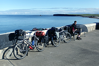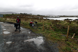 We passed quite a few road cyclists out on their Sunday ride, some more daring than others in shorts and sleeveless tops. I must say that Irish cyclists are very friendly and seem very pleased to see us. Possibly it is just nice for them to know that there are other people crazy enough to be out in this weather! We passed into Galway and it seems like a great little town and so we might have a rest day here tomorrow. We arrived at the campsite at 2 pm, which is basic, but only 5 km out of town with a bus stop right outside the gate. We didn't stop to look around Galway as it was still raining heavily. The rain continued until about 5:30pm, so it had been very wet.