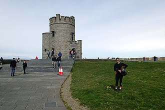 Ireland repaid us today for the discomforts of yesterday! The day dawned a little cloudy but as they say, every cloud has a silver lining and this day, literally! We headed off at about 8:00 am and had a beautiful ride all the way to the Cliffs of Moher. We kept commenting: "We are so lucky with the weather!". The Cliffs of Moher are the most visited attraction in Ireland and on their day the views are spectacular. We were really fortunate that we did not have yesterday's weather! We had wonderful views of the coast all the way, with the sea calm and flat. The route that we cycled yesterday and today is called the Wild Atlantic Way and it lived up to it's name yesterday. County Clare though is the Ireland of the postcard, and we had picture perfect weather! We stopped for breakfast and the lady who served me warned me of a stiff climb to the Cliffs. Of course, we were at sea level and the Cliffs reach heights of 214 m. The road was quite narrow but the traffic was fine and the sweeping vista to the sea on the left stunning. We took the turn to the Cliffs and the climb was not much to report on. The Cliffs of Moher is a great place to visit. Chock full of tourists by the busload, but we imagine it is much worse in summer. Hat's off to the authorities as people are charged per head as they enter the carpark but as we arrived on bikes there was no charge. There are a few tourist shops and a visitor's centre. We stayed there for about an hour and then took a quick descent down to the lovely Doolin and our campsite. As we turned off to Doolin we passed the Clare's Jam Shop and pulled in on a whim. It is a tiny store with a HUGE variey of jam. We chose a marmalade and a sumer fruit jam. Best jam we've ever eaten! Doolin has some craft stores which sold lovely things but I wouldn't have much use for a mohair scarf in Perth!