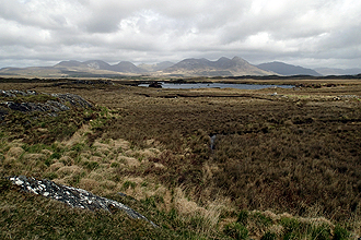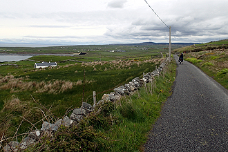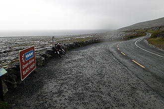 We have figured out that in Ireland it seems that riding 4 days in a row is probably the best you can do with the weather, and that's throwing in some bad weather days too. It is beautiful though and we were keen to get back into riding today, although we still had a VERY strong westerly wind. The route was still the Wild Atlantic Way (what else did we expect with a name like this?) and it was a wonderful route today. Leaving Galway was a bit busy. We had full wet weather gear on as showers were expected and the head wind makes you cold. I don't know why we persist in reading the weather forecast as it usually predicts showers and the Irish meaning of showers is actually just one long shower starting at 8:00 am and lasting to 4:00 pm. Today at any rate there were actual showers; hard soaking rain as the clouds were whipped overhead. We stopped for breakfast in Spiddal when there was a break in the weather and the first 30 km were just into the wind along a very pretty stretch of coast. The route ran through the famous Commenara region. The area west of Galway is Gaelic speaking and it was interesting now to see all official signs in Gaelic only with no English translation. The route was quite flat all day. After this as the road changed its course we had a very strong side wind, the type that wants to pull your tyres out from you. We had also entered a very remote area, no farms, just heather, rocks and distant mountains. At the 56 km mark we entered a bog complex area where peat mining still takes place. This was interesting to see, the piles of peat bricks by the roadside and the channels maring the excavations. This area was really spectacular. It had that mountain top feel to it, without having to climb a mountain: Bonus! The day just continued rolling on. We had throught that we might end up camping in the bog area as it was lovely with little lakes dotted around everywhere, but we ended up making it to our planned destination. The headwind took it's toll as we had just over 6 hours riding time. We could have done the distance in 4 hours without it. Taking everything into account it was a great day's ride and highly recommended.