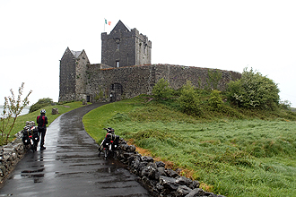 We have had some difficulty with gloves on these wet days. As already mentioned, we have goretex gloves but they only keep the rain out for about 2 hours. By the time we get to our destination they are soaked through and take a long time to dry. We have not had two very wet days in a row but if we did, this would be a problem. The French motorcycle tourist we met on the Shannon Ferry had worn rubber gloves which I had had a look at; she said they were very good. Mike got thinking about where to buy such things and thought a garden centre would be a good bet as you could get heavy duty thick gardening gloves. This was better than my "idea" of picking up discarded gloves on the roadside. It amazes me how many you see on the road when touring; too much time spent staring in the gutter! So we stopped at the first garden centre we saw and the delightful lady there sold me a pair of Hulk green ones. They certainly feel waterproof! She gave me a bag for my other gloves that had made a pool on her countertop, saying "Hang them from your handlebars, dear, they will dry in the breeze". Tongue in cheek, me-thinks!