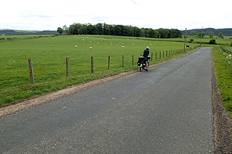 "Back to England, Back to Kaka-laka" - in Mike's words. Yes, today brought back memories of those first nightmarish few days through Cornwall and Devon so many weeks ago. How can it be that we leave Scotland and arrive back in England, and our first day takes us back over the never ending 10, 12 and even 14 percent climbs up and down, up and down? These route planners lose the plot a bit from time to time. The route was the Pennine Cycleway (No. 68). We turned onto it after 12 km on a primary road. It skirts with Northumberland National Park and goes up hill and down dale through green pastures and farmland. We had bought breakfast last night which was a good thing as our first glimpse of a shop of any kind or even a place to buy food or drink, was a post office at 68 km. We laughed to remember our first day riding into Finland a few years back when I was aghast not to see a shop for 50 km and here we are in England, and it is more remote! We had planned to get as far as Hadrian's wall today which was 104 km but due to us being totally hacked off, and also our legs hating us, we aimed for a Caravan and Camping Club site at Bellingham at 73 km. The village of Bellingham was lovely with a shop and good bakery with delicious pies, etc. The campsite was welcoming with fabulous indoor facilities which we made ample use of. We were happy to have a bench at our tent site too, but the midges have arrived! (On that note, for some idiotic reason, benches are usually only provided to campervanners who never step outside - No Jokes! Mike always laughs because they sleep, eat and drive their turd around all day, without getting a breath of fresh air!) That said, how can the midges be here, but summer is not? They must have lowered their standards. We had woken today to blue skies and sunny weather which lasted all of one hour and we were back into gloom, but we are far enough into this caper to know when to call it a day which we gladly did.