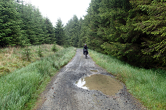 We had a relaxed start today, well for us anyway and headed back to the village first to pick up yoghurt for brekky as we ended up eating it last night. We knew we had the option of going 90 km to Carlisle or 60 km to Brampton. A lot would depend on the weather. We headed off on Route 68, the Pennine Cycleway, and entered Northumberland National Park, straight up a crazy hill and then one or two more. It was a misty morning. We had chosen to follow this route as we wanted to spend some time in the Park. The road changed to track after 15 km but it was in reasonable condition and all rideable. Very beautiful forest scenery. We stopped for breakfast in the forest after about 20 km and then saw two men coming along on bikes. We had a chat and they were locals and birds of prey enthusiasts who believed there was a rare sort of bird nesting in a tree about 4 miles further in. They had good knowledge of the area and history and spoke about the people who had lived in isolated communities in these border regions hundreds of years ago before the area had become forestry ground. In particular, they told us about the local breed of sheep here "hefted" sheep which will never wander more than 2 miles from their place of birth, so no need for fences in those days!