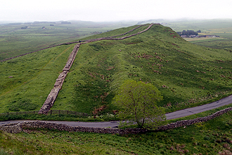 When we got going again the road surface deteriorated a great deal but we did not have long on it and soon hit bitumen again. We were looking forward to our first glimpse of Hadrian's Wall which we got not long after. We had turned off the Pennine Cycleway but had not yet joined the Hadrian Wall Cycleway and our road crossed the wall at Caws Gap. We walked up the hill and looked down on it, quite impressive. We continued along the Hadrian's Wall Cycleway all day. We had some drizzle and some rain, and had to put on rain gear and then take it off, and then got wet and put some back on. The riding was pleasant enough and also there was The Wall Run on the go, a cross country run which stretched out over quite a way with runners and walkers. We passed some of the sites along the wall which are visitor attractions; a Roman fort as an example. The wall cycle route is 174 miles long and there is much to see and do along it. For us, riding along sections or crossing sections was enough. We arrived in Brampton and the rain was coming down. We stopped to buy some supplies and saw a group of guys walking along with delicious looking servings of fish and chips and Mike asked "Where did you buy that?". They pointed us in the right direction and we had fish and chips, and haggis, black pudding and peas for lunch. As it was raining we sat on the little bench in the fish and chip shop. There was a campsite in the town but we wanted to use the small Caravan and Camping Certified Site which was 8 km further on near the airport. I rang first to make sure it was open and we could get in. It is a brilliant site; small with cows and calves in the next field and all that we needed. As we arrived the sun came out and it stayed sunny for the rest of the day. We even sat outside until 9 pm! Long may it last.