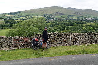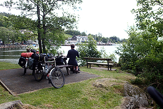 As we had only a short day planned and it had rained quite a bit overnight and was still raining when we woke up, we decided to wait for a break in the weather before setting off. We climbed a little towards Keswick but then hit the road towards Thirlmere Reservoir. We were now in the Lakes District National Park proper and it was exceedingly pretty and quite hilly and mountainous all around. We were really disappointed to pass two fabulous farm campsites very close together. Had we known about them, we would not have camped where we did last night. Troutbeck Camping was okay but quite big and the ablutions were miles away from our tent. A farm campsite would have been preferable. National Cycle Route 6 around the Thirlmere Reservoir to Grasmere was inspired. It made the trek over here from Edinburgh worth it! The Lake's District is beautiful! The road was perfectly quiet and very lovely. Grasmere suprised us being a sudden tourist trap with people milling all around. Many visit Wordsworth's home. A few kilometers on we hit Ambleside on the shores of Lake Windermere. We had left our lovely sideroad and approached from a primary road but it was still very picturesque.