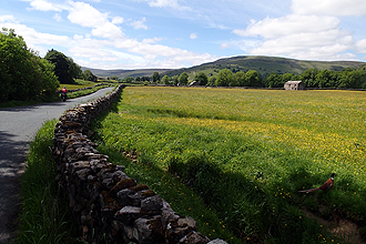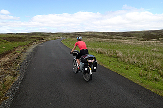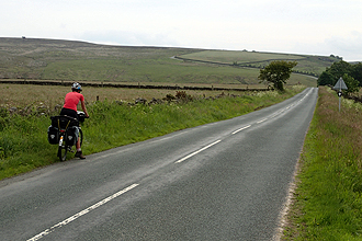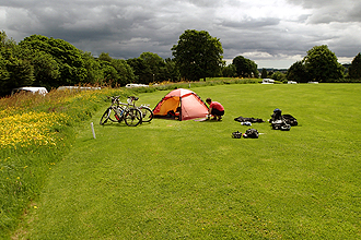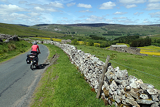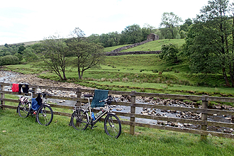 We descended into Hawes which was having a market day with street stalls. We happily stopped our bikes right at the fudge stall to stock up! We also bought some homebakes and samoosas. There was a big Tour de France sign on a shop wall and many cycling references and also quite a few cyclists, including three other cycle tourists. All in all there was quite a jovial atmosphere. We only had 20 km to ride to our campsite and set off up the second climb. We passed the three tourists soon after as they had stopped to take photos of poppies in the road but they were to return the favour shortly after when a series of 5 short crazy hills left us walking. In our defence they were barely carrying any load at all and the gradients did get up there to as high as 19%. Too steep! (As the third guy passed looking pained I said, "Well done - too steep for me!" he replied "For me too!". We didn't mind it though as on such steep hills if you could ride you would only really just beat your walking/pushing speed. The views were amazing and we were back into the heatherscape again. As we reached the top we heard shouts from our right and there the three were at a lookout on a far hill waving and shouting, we shouted and waved back. The descent was equally picturesque, the road curling down and scree slopes to the right. We were suprised and amazed by the beauty of the Yorkshire Dales. At the bottom we came to Muken a tiny village where we bought the last two bottles of lemonade. Once again, many road bikers around. A few hundred meters down the road we came to one of our favourite campsites of the trip. Exactly our cup of tea, we could pitch at the river and the facilities were simple and good. The farmer spoke to us about our day's ride and only then did we realise that the Tour de France race had come through here last year. So the road that we camped had been packed with thousands! No wonder the place has become such a cycling mecca! When we checked our total ascent for the day it was 1,420 m over 74 km! Cross Top is right!