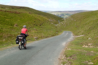 We are always checking the weather forecast so knew that today's weather was supposed to be good. Even so, it exceeded our expectations! Apart from some cloud mid-morning we had great weather and even rode in short sleeves and pants for the first time since one day in Exmoor, Devon many moons ago. We had a stiff climb out of Kendal and not long after entered the Yorkshire Dales National Park and the village of Sedbergh which was very pretty. We knew the day would have two big climbs, apart from the suprise climb out of Kendal, and the first started here. The park is very beautiful and the climb took us along a tiny narrow lane curling around through temperate, ferny forests and mossy streams. Sheep grazed everywhere and the whole place is idyllic. At this time we were still on Route 68, however later in the day we were to leave it and go onto the Cross Top Yorkshire Dales Cycleway (enough said!). The initial climb took us up above the tree line to heather covered hills and through the village of Dent. It was a great ride and afforded brilliant views for miles around. The road was quiet and narrow all the way, a perfect route.