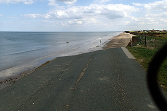 In the late afternoon we rode down to the "seaside" which was only 2 km away. The coastline is filled with holiday villages (the static caravan variety) and the area is famous for them. The real feature though is the eroding coastline. A road that ran along it is just falling into the sea in bits and pieces. In order to get to the beach you have to clamber down steep eroded cliffs. The water looked so inviting and we managed to negotiate the steep slope! The swim was cold but worth it; our first proper North Sea swim! Summer is here.