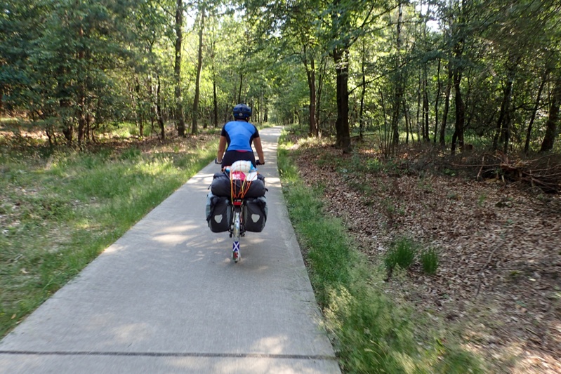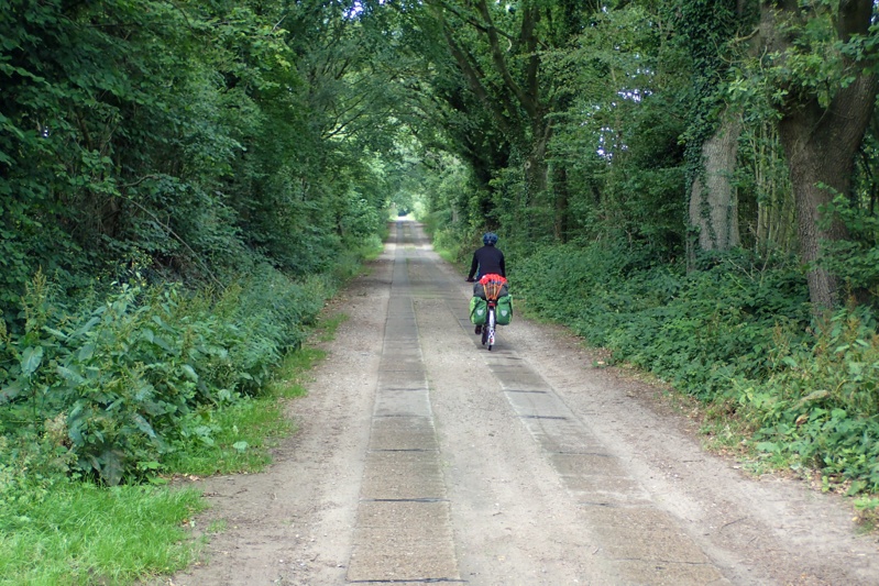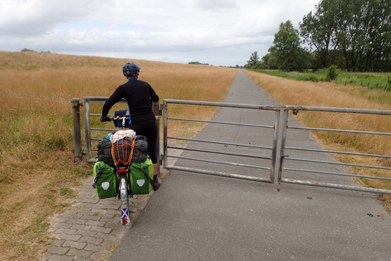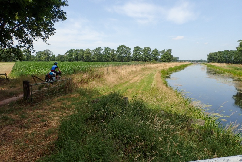 The diversity of the landscape in the Netherlands is always surprising as we experienced on a previous trip. When you think of the Netherlands you automatically think of a flat country with picturesque villages, but just today we cycled uphill, through beautiful forest glades and passed very sandy (high) areas. An example of this is Rosendael Woods, after Rosendael Castle where almost all the roads are car free and the place was full of road cyclists in little packs, obviously due to the little climbs that you get there. It was such an experience to ride there. After this we were back into rural Netherlands with farms and little canals. We stopped to buy a bottle of Coke, yes, our first of this tour! Must be hot! We drank it in a little park and watched the locals cycle past. After this we caught a little ferry across a river and then spent some time cycling along a dyke. We passed through various woodlands again on little dirt tracks. All the while there were elderly couples, families with small children and family groups with grown-up children, all out on their bikes just enjoying the day. We would often pass a couple who had stopped at a bench for a bite to eat, clearly out for the day on their bikes. We even passed an old man who had stopped and sat on a bench in the shade and fallen asleep. We love the atmosphere here when cyclists are the majority.