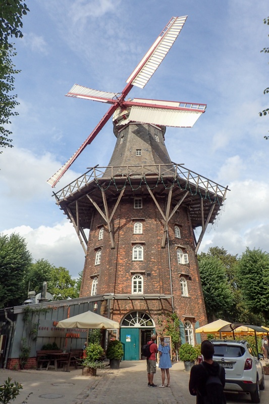 Another day's ride through peaceful rural Germany! As it was Sunday the shops don't trade, but the bakeries are open so we stopped early at one for delicious fresh buns. We stopped soon after for our morning flask coffee break. We were headed for the Elbe River which we would cross just west of Hamburg. We were not really interested in seeing Hamburg. It was a cool day and a bit breezy, although the headwind would really kick in towards the end of the day. We passed the Hamburg Airport on the way to the river. We caught the Teufelsbruck ferry which had space for bicycles. As the Elbe is busy with barge traffic and the ferry crosses this at 90 degrees, the ride was short and VERY bumpy. You could barely keep on your feet! Bicycles fell over if left unattended! The trip was about 5 min and then you emerged on the Hamburg side of the Elbe. The route ran along the river for some kilometers, very scenic.