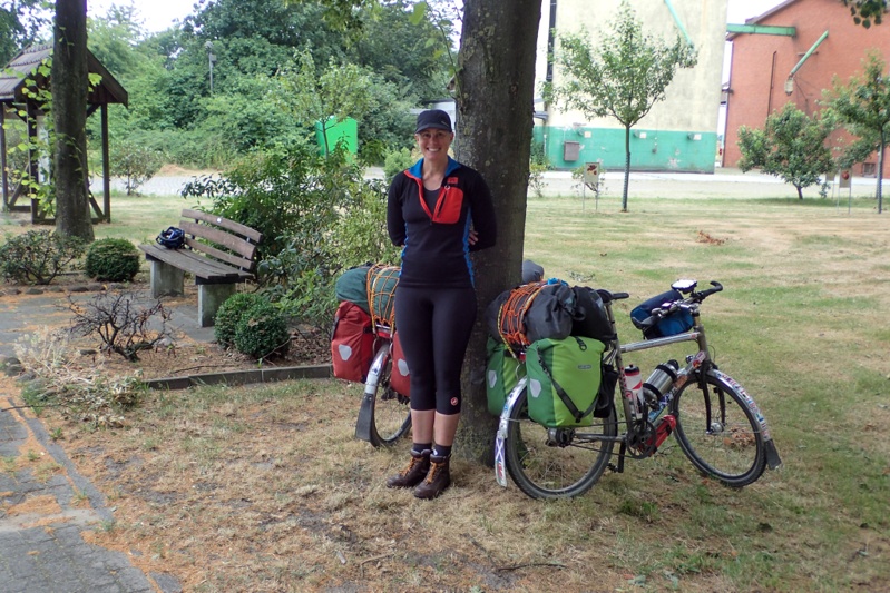 Another pair of cycle tourists arrived last night after writing, with a small baby that one of them pulled along in a trailer. We are starting to see more cycle tourists which is interesting. The baby was very vocal and seemed excited to be there. Probably just stir crazy from being bounced about all day! We got an early start at 07:30 as there was to be a head/cross-wind today which would grow in strength. We made good progress today, again a combination of quick cycleways along main routes and cycle routes which deviated on all sorts of terrain. It makes it interesting to decide at an intersection which way to go. It was quite cool on the bike today but the sun came out now and again. We have had cloudy weather for many days now, those first three hot and warm days cycling out of Amsterdam have been followed by pretty average weather. At least it's not UK grey though, the clouds tend to be big, white and fluffy. We stopped after 30km at a football field for raisin bread and continued making good time. Something that really stands out for us about this part of Germany is how very quiet it is. I know that I have remarked on this before, but it feels strange to cycle down main streets of villages and see no one at all. The villages are obviously lived in and most are very pretty with well-tended gardens full of summer blooms. Maybe they all leave early for work in nearby towns?