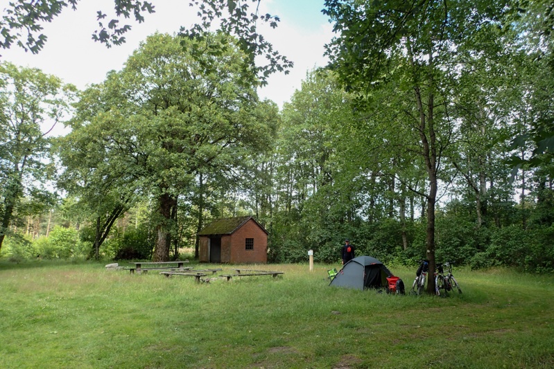 We only had about 15km to ride after the town to our shelter spot in the woods. Here we actually abandoned Route 3 as it went to rutted single track once again. The road into the the forest was still fairly rough, but with good sections. We arrived at the shelter place and it was really well-equipped with a few shelters, drinking water and pit toilet. The campfire was well-used. When we arrived there was a family there and the grandpa came over to chat to us. He said that the Danish government was investing a lot of money in these shelter and primitive camp spots to get people out into nature. Refreshing to hear! He also warned us about the ticks which spread disease. This was a little disturbing as we have had many ticks this trip in Germany and Denmark. After this family had left there were three more groups that came along and used the campfire spot. They just cook their food, eat and move on. There was also a lady with 2 kids who came to pitch their tent. It seems that people use these places a lot! We have only 80 km left to ride in Denmark before catching the ferry from Frederikshavn to Sweden, but will do it over two days. So will hopefully have a sleep in tomorrow.