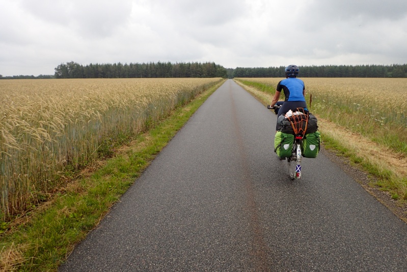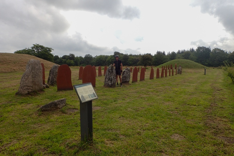 Our main stop was Jelling, UNESCO World Heritage Town due to the remains of Viking civilisation located there. It is a lovely spot, very low key, with a great info centre/museum. It is a cool place to visit. The weather today was quite humid and clammy and thunderstorms threatened this afternoon. The terrain is getting a little hillier now, which is a good thing as the legs need to get back into that! We are camped in the middle of an old pine forest which was very peaceful. We filled up with water at nearby river.